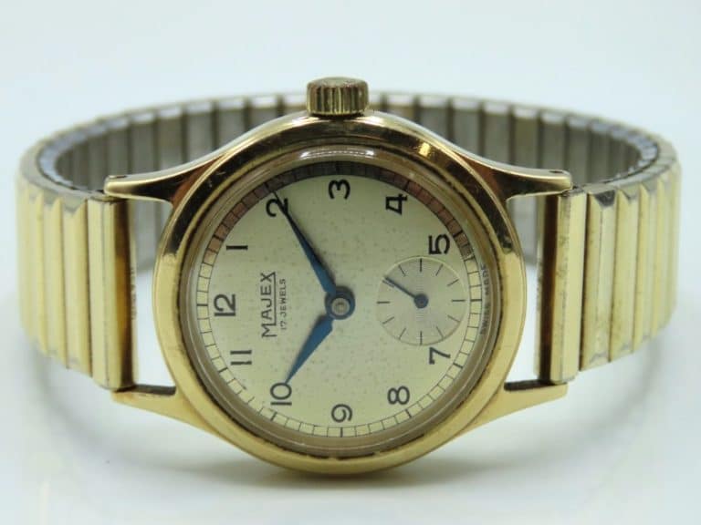 A gents 9ct gold cased Majex 17 jewel wristwatch, case 30mm diameter, inscribed to rear "Presented by United Dairies Ltd. to P. Giles to commemorate 41 years loyal service 1963", case diameter 30mm £200-250