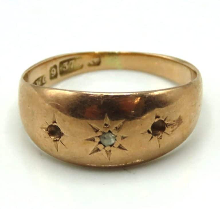 A 9ct rose gold ring set with single diamond chip, lacking two other stones, 2.6g, size M £70-90