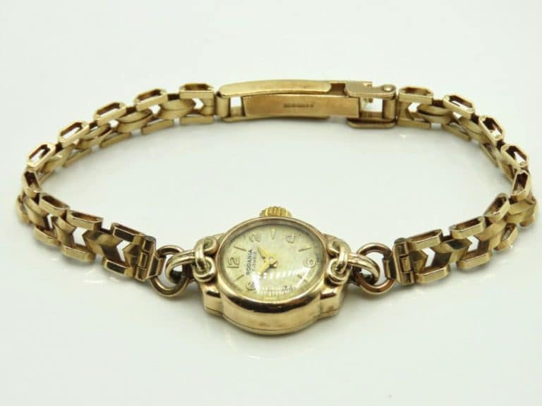 A ladies 9ct gold cased Delma wristwatch with hour hand only, 17 jewelled movement, winds & runs, case diameter 19.25g £60-80