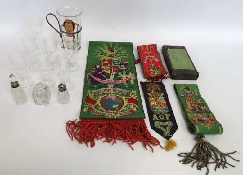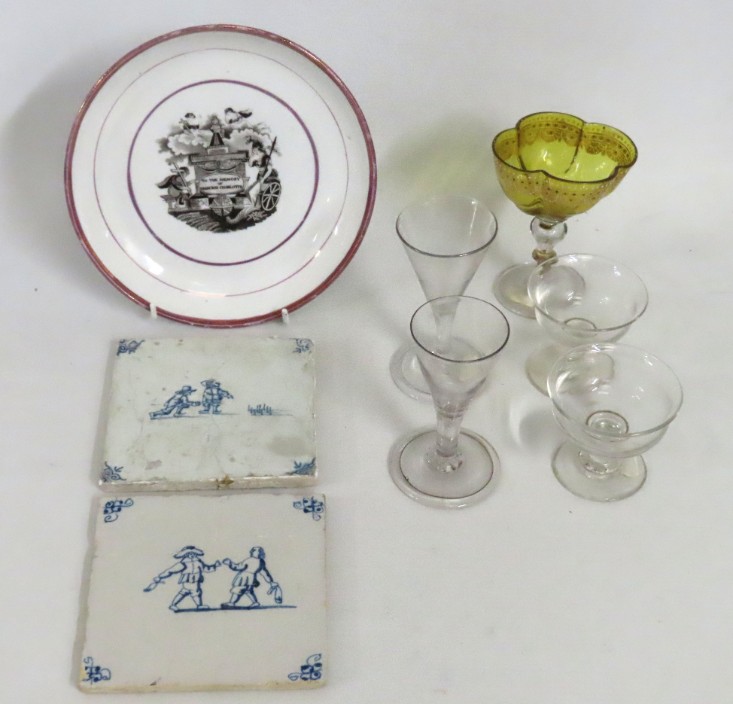Two Waterfrord crystal champagne glasses twinned with two Waterford crystal brandy glasses & a quantity of other glassware including two small 19thC. sherry/wine glasses £20-30