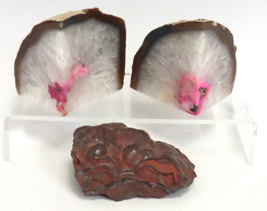 A 10ct gold set with ruby Smith, Kline & French collar stud twinned with a 9ct gold mounted earring, 10ct gold weight 1.6g £50-70