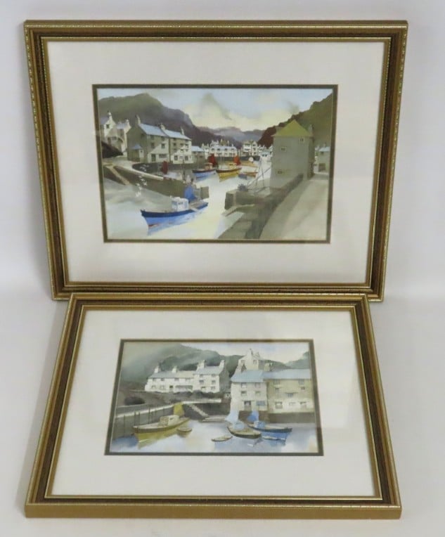 Mike Kerris (1934-2024), four signed prints of local landmarks including the Jamaica Inn twinned with an amateur copy of said painting signed S. Lewis, largest overall 677mm x 410mm £20-30
