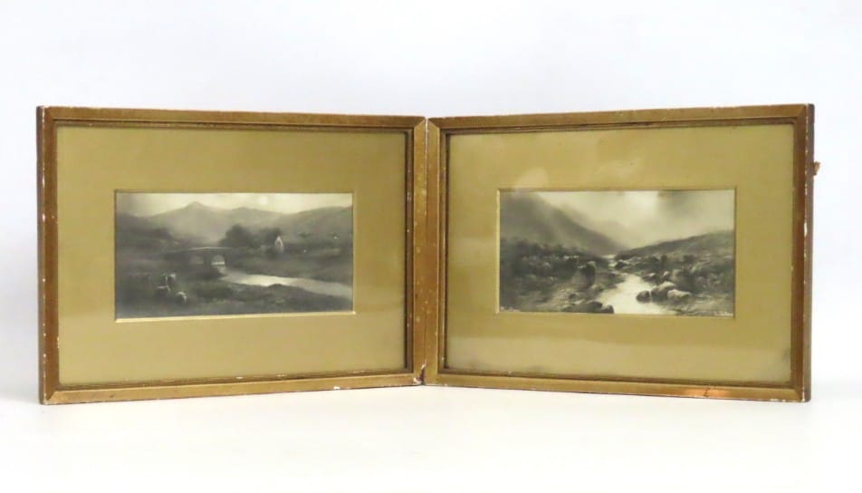 A pair of atmospheric framed prints of Two Bridges, Princetown & Dartmoor by Elmer Keene who produced postcards. Overall size 325mm x 220mm £10-20