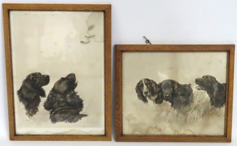 A pair of Annie Tibbetts, large early 20thC. framed oils on canvas of cattle within Scottish Highlands, one dated March 18th 1908, small two inch tear upper right side & March 25th 1908 small loss of oil around very small hole upper left side, image sizes 900mm x 590mm £80-100