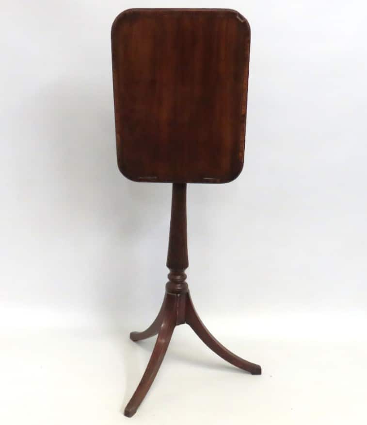 A 19thC. tilt top table with reading stand, original mechanism removed from under, repairs to legs, 415mm wide x 315mm deep x 710mm high £10-15