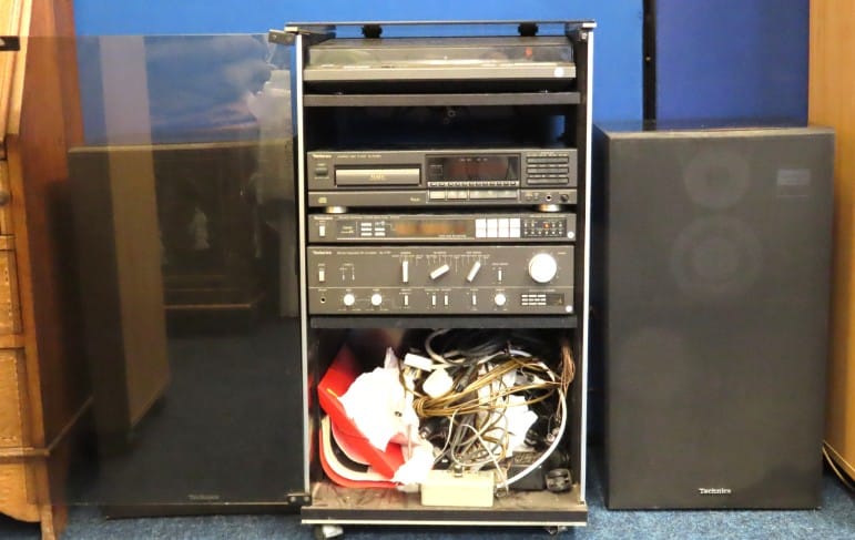 A Technics hifi separates stack system comprising a Technics Direct Drive Automatic Turntable SL-DL1, a Technics Compact Disc SL-PG420A, a Technics Quartz Synthesize ST-S707, a Technics Integrated DC Amplifier SU-V707 & a pair of SBX700 Speakers, overall height 855mm £80-120