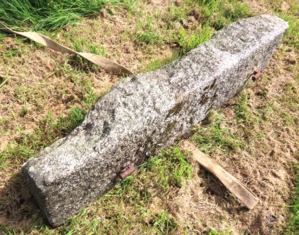 A granite gate post with iron gate mounts, 1470mm long x 290mm wide x 240mm deep, no public viewing on this lot - fixed off site PL14 collection time to be arranged - the lot is good condition £100-200