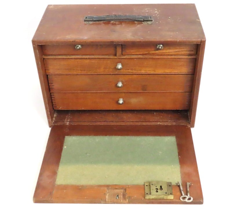 An antique carpenters tool chest with hasp & padlock, 840mm wide x 485mm deep x 410mm high £20-30