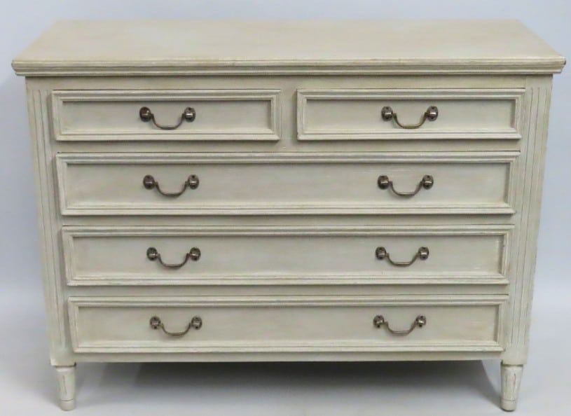 A Scandinavian style two piece grey bedroom drawer set, larger 763mm wide x 420mm deep x 775mm high, smaller 455mm wide x 420mm deep x 775mm high £30-40