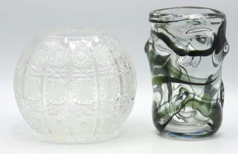 A Whitefriars knobbly vase with green streak twinned with a Bohemian cut glass crystal globular vase, tallest 185mm £20-30