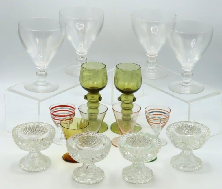 Four 19thC. ale rummers, one cracked, 145mm tall, two Moser style goblets, four 19thC. cut glass table sales & other glassware, some faults £20-30