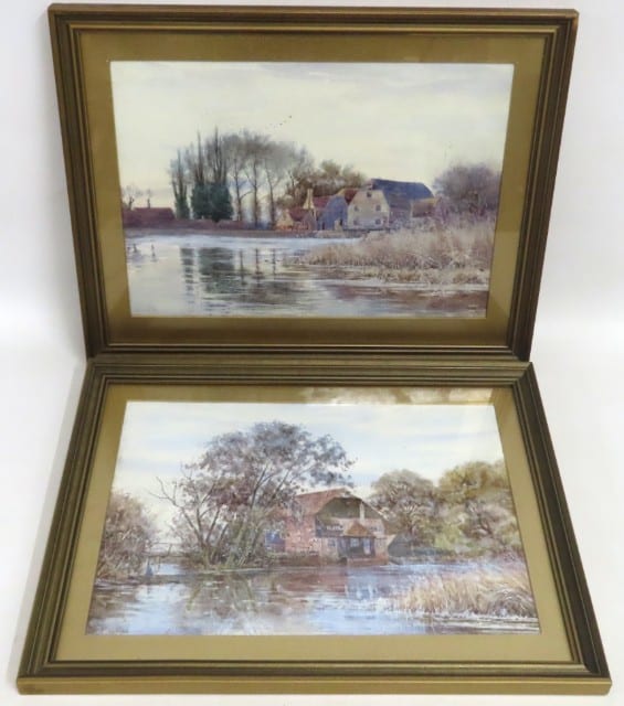 Robert Winter (British), a pair of watercolours of buildings & landscape within estuary, image size 370mm x 260mm £60-80