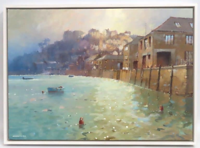 Michael D. Hill (b.1951), a framed oil on canvas depicting West Country quayside, image size 700mm x 500mm £50-60