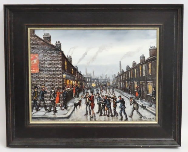 Phil George (b.1960), oil on board painting of Northern Street scene, image size 380mm x 285mm £200-300