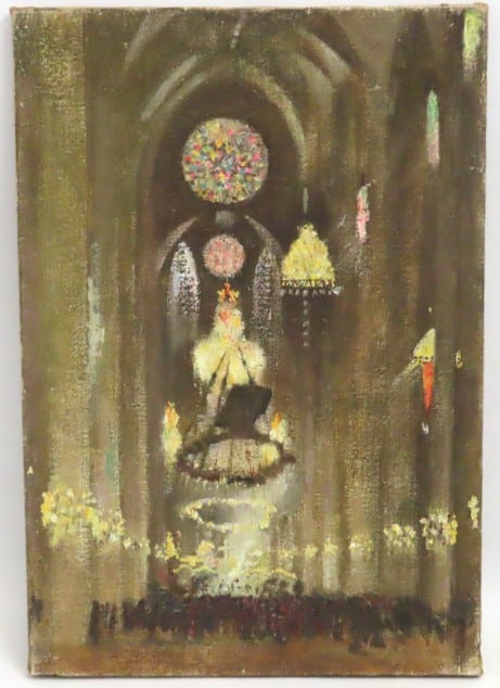 Rudolf Helmut Sauter (1895-1977 German), oil on canvas Cathedral interior, unsigned. Painting bought direct from Sauter himself at Stroud Subscription Rooms, George Room, where he used to exhibit. Image size 483mm x 331mm £80-120
