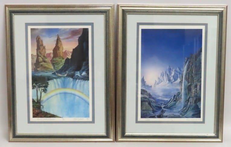Roger Garland (1950-2017), two framed signed & titled limited edition Tolkien Lord of the Rings prints: Gollum 589/950 & The Last Journey of Boromir 186/950, 585mm x 450mm inclusive £50-60