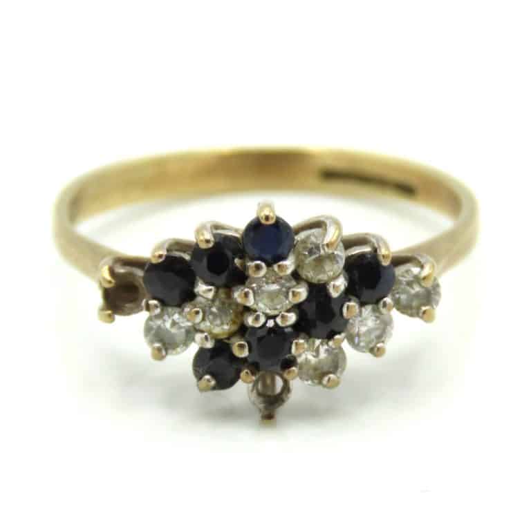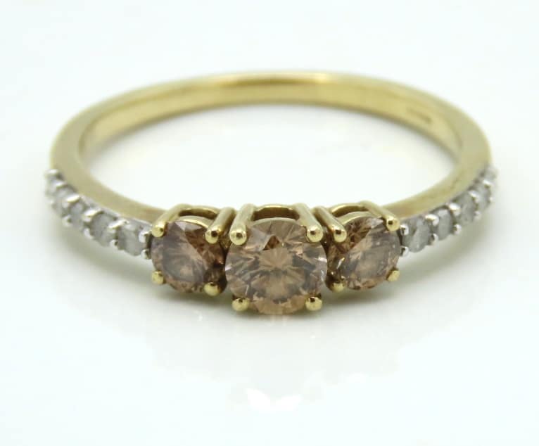 A 9ct gold ring set with champagne & white diamonds of approx. 0.55ct, stones have inclusions, 1.7g, size O £60-80