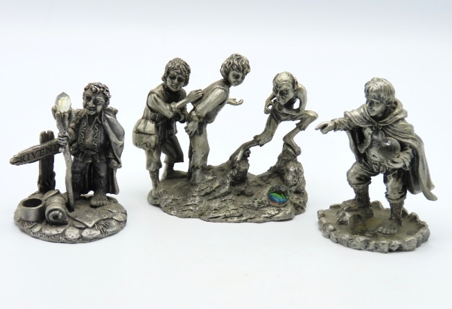 Three Tudor Mint heavy pewter figures relating to Lord of the Rings; Frodo, Sam & Gollum 5053, Frodo 5048 & Bilbo Baggins II 5039, tallest 88mm £20-30