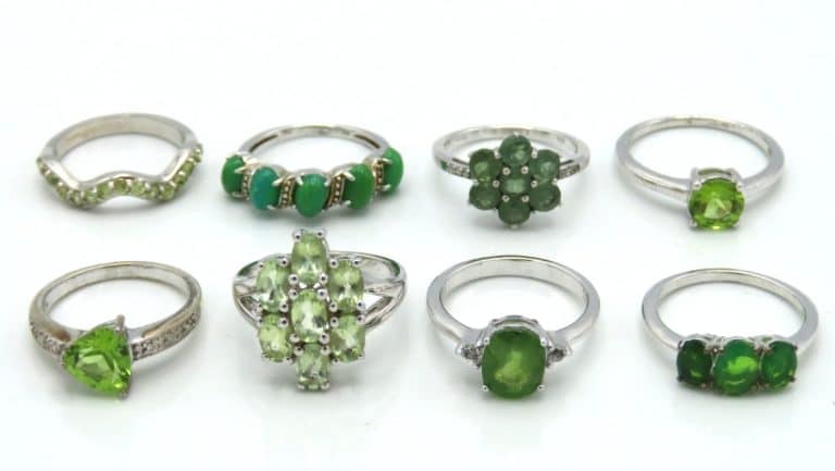Eight sterling silver rings set with various stones including peridot, six size O, one size N/O, one size R/S, 23.6g £30-50